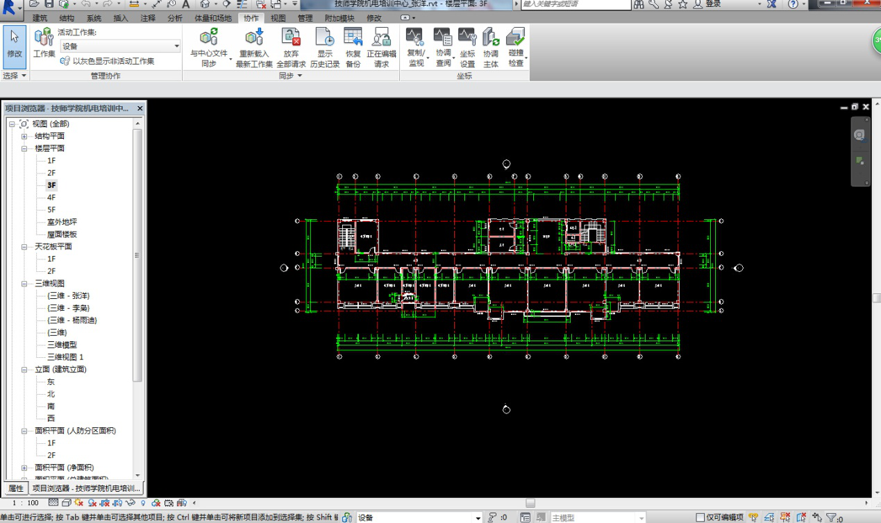 2、 小組成立以來,積極參與各種與BIM相關(guān)的學(xué)習(xí)與活動,整體掌握了Revit設(shè)計軟件,為了使小組的學(xué)習(xí)及研究能真正應(yīng)用到實際工作和工程中,小組各專業(yè)成員利用業(yè)余時間使用Revit完成了對已出施工圖項目的重新設(shè)計。